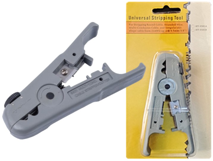 Pelacable versátil diseñado para retirar el aislamiento de cables coaxiales (RG) y cables UTP. Facilita la preparación de cableados en instalaciones de telecomunicaciones.