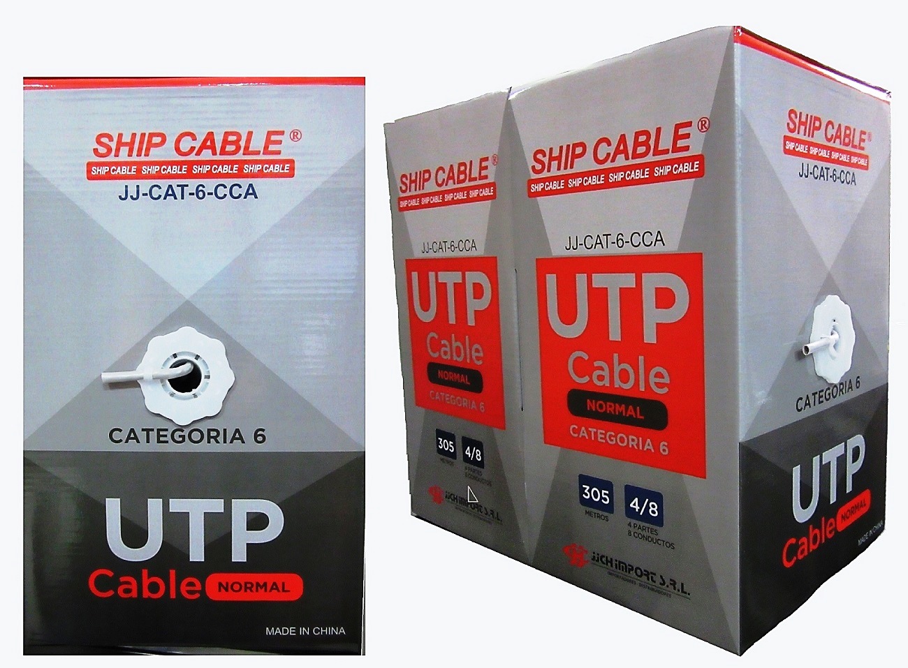 Cable UTP categoría 6 en rollo de 305 m con conductor 23AWG y diámetro de 6 mm. Ideal para instalaciones de red que requieran mayor ancho de banda. Marca Ship Cable.